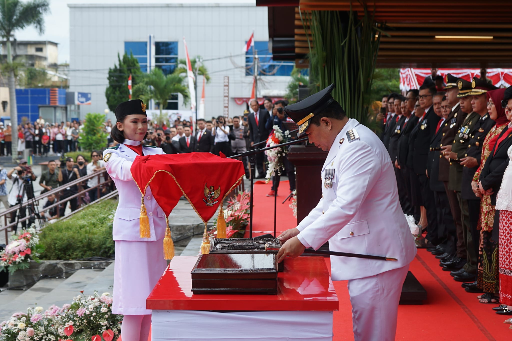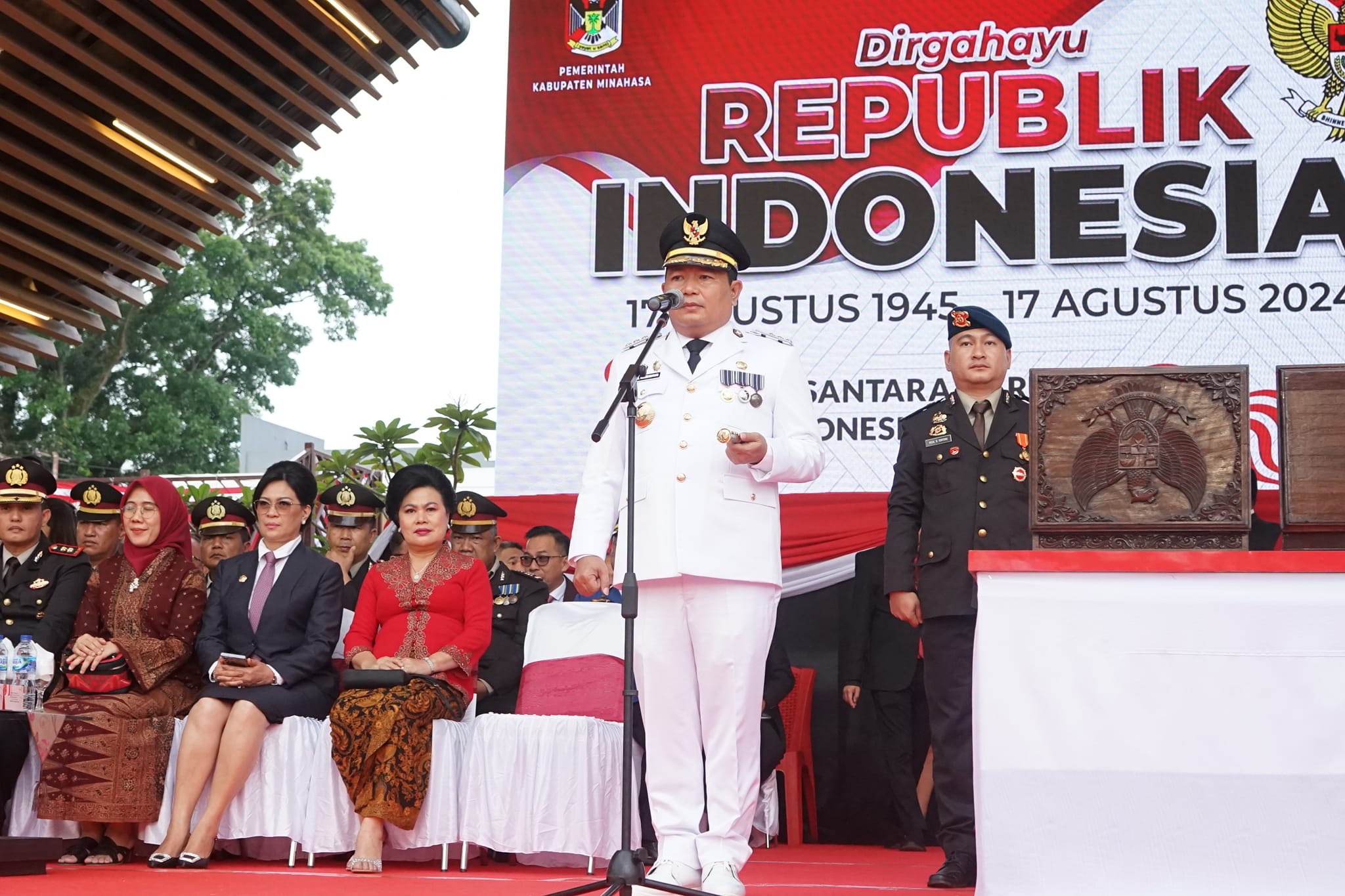 Bupati Minahasa Dr Jemmy Stani Kumendong, M.Si bertindak sebagai Inspektur Upacara (Irup) pada HUT Kemerdekaan RI Ke-79 tahun 2024 .