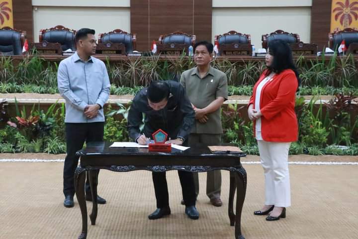 Dewan Perwakilan Rakyat Daerah (DPRD) Sulawesi Utara (Sulut) menggelar Rapat Paripurna DPRD dalam rangka Penetapan Peraturan DPRD tentang Kode Etik DPRD dan Peraturan DPRD tentang Tata Beracara Badan Kehormatan (BK) DPRD, Selasa (14/2/2023).